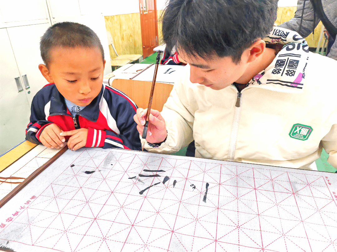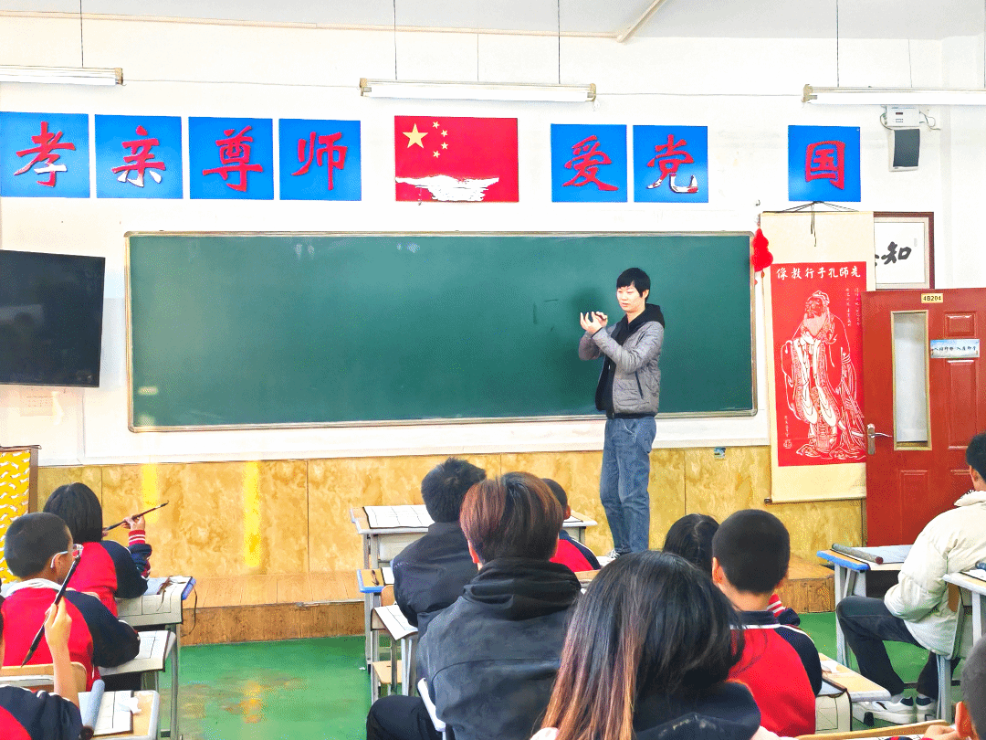 在书法教学环节,书法学院教师为在场师生进行示范授课,系统讲解握笔姿势与用笔技巧,并现场演示书写过程。随后,书法学院学生运用专业所学,一对一指导玉琨国学实验学校学生进行实践操作,现场学习氛围浓厚。学生们纷纷表示,通过这次实践活动,他们不仅提升了书法技能,更深刻体会到了书法艺术的魅力和传承传统文化的重要性。