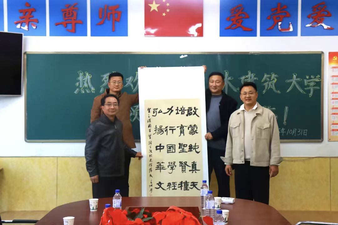 活动最后,双方领导就传统文化与现代教育的融合路径等议题展开深入交流,并互赠礼物。书法学院以两幅墨宝相赠,这份蕴含着传统文化精髓的礼物,是对玉琨学校国学教育事业的真诚祝愿与支持。玉琨国学实验学校也回赠了富有本校特色的文创产品,对书法学院的深厚情谊表示感谢。此次互赠,不仅传递了情谊,更深化了双方对弘扬传统文化的共识。