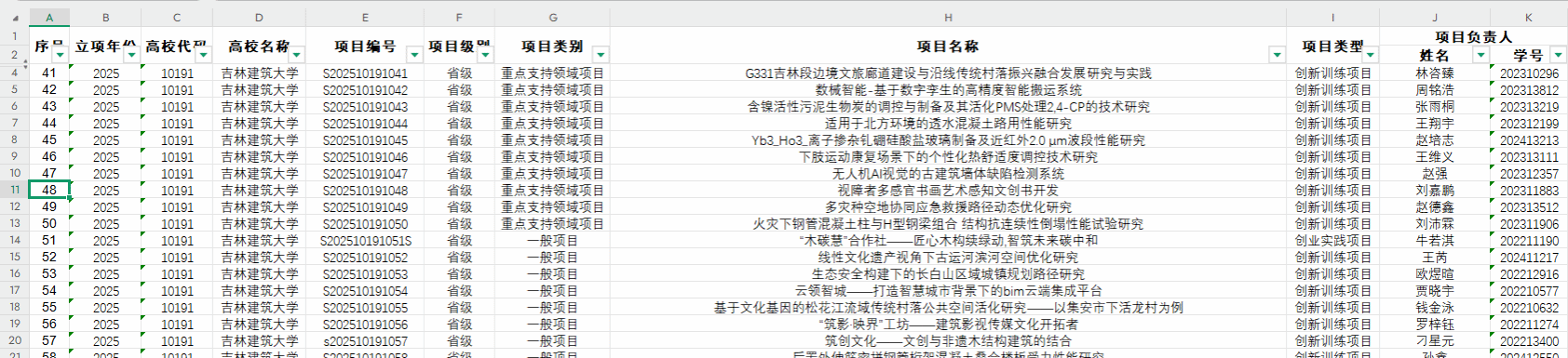 根据教育部高等教育司和吉林省教育厅发布的相关通知,2025年吉林省大学生创新创业训练计划项目立项申报工作已经完成。在公示的拟立项名单中,我院刘嘉鹏同学成功获批省级重点支持大学生创新创业训练计划项目。