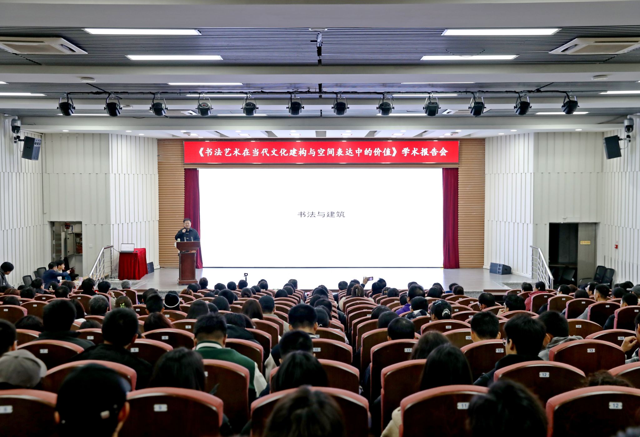 本次专题讲座是吉林建筑大学“美育长白·第四届美育”艺术节系列活动的重要内容之一。通过艺术展览与学术讲座相结合的方式,围绕“书法与建筑”这一核心主题,为学校师生搭建起跨学科交流平台,促进大家在笔墨文化与建筑场域之间展开深层对话,充分体现了学校在推动美育创新、深化跨界融合方面的积极探索与实践成效。