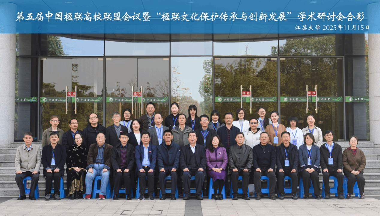2025年11月15日至11月16日,第五届中国楹联高校联盟会议暨“楹联文化保护传承与创新发展”学术研讨会在江苏大学召开,来自中国楹联高校联盟成员单位和江苏大学的师生代表一百六十余人参加了会议。我院副院长李也教授受邀参会,并围绕“楹联文化保护传承与创新发展”主题作交流发言。